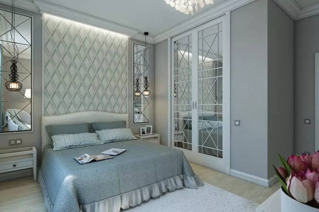 Отделка стен спальной комнаты зеркальными панелями — интересное дизайнерское решение. Оно поможет увеличить площадь помещения, скорректировать его пропорции и добавить света. Зеркала, как декоративный элемент, призваны дополнять интерьер, расставлять акценты и завершать общую картину.