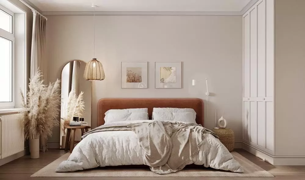 Идеальный декор изголовья кровати в спальне — бессюжетный. Это же правило применимо и к предметам декора напротив, в ногах кровати