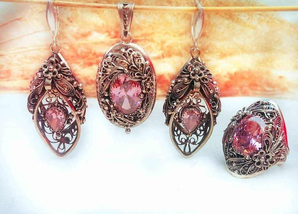 Набор ювелирных изделий из крупных фиолетовых александритов.