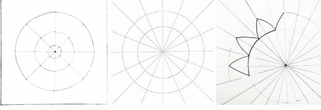 Шаг 3. Нарисуйте круг, разделите его на части, как показано на рисунке.