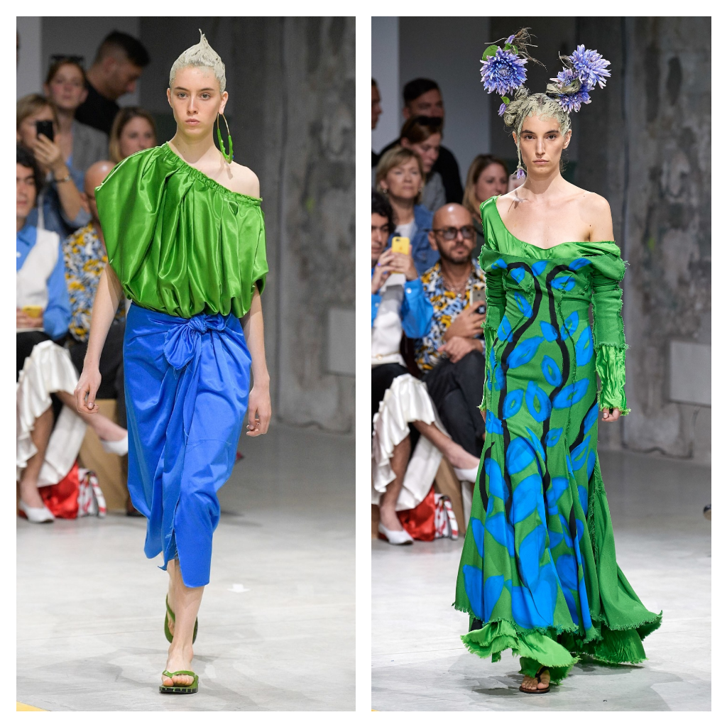 Эти опасения вполне обоснованы: обратите внимание, как броско смотрится ярко-зеленый цвет в сочетании с ярко-голубым в нарядах Marni из весенне-летней коллекции. Такое сочетание вызывает ассоциации с карнавалом: это совсем не повседневный вариант