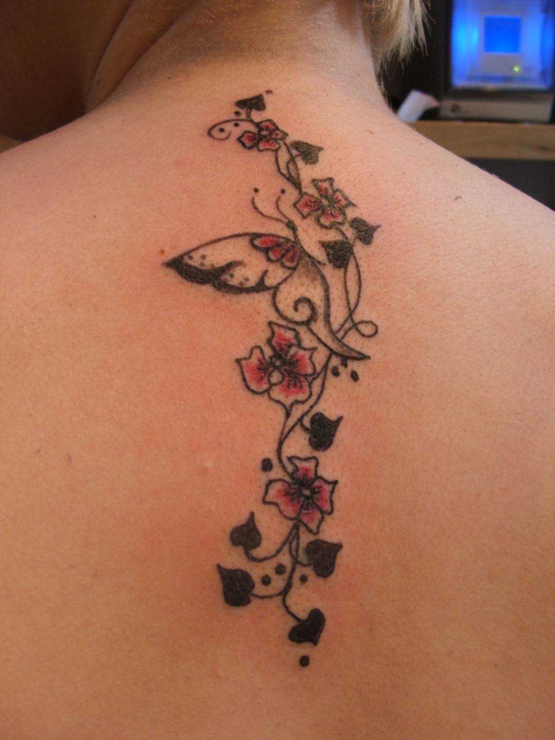 Татуировка бабочки и цветов