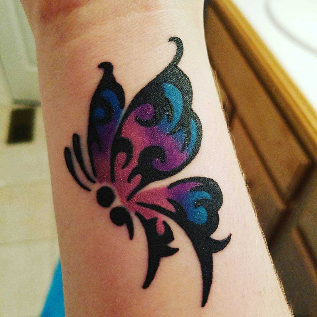 Тату с цветной бабочкой в полете