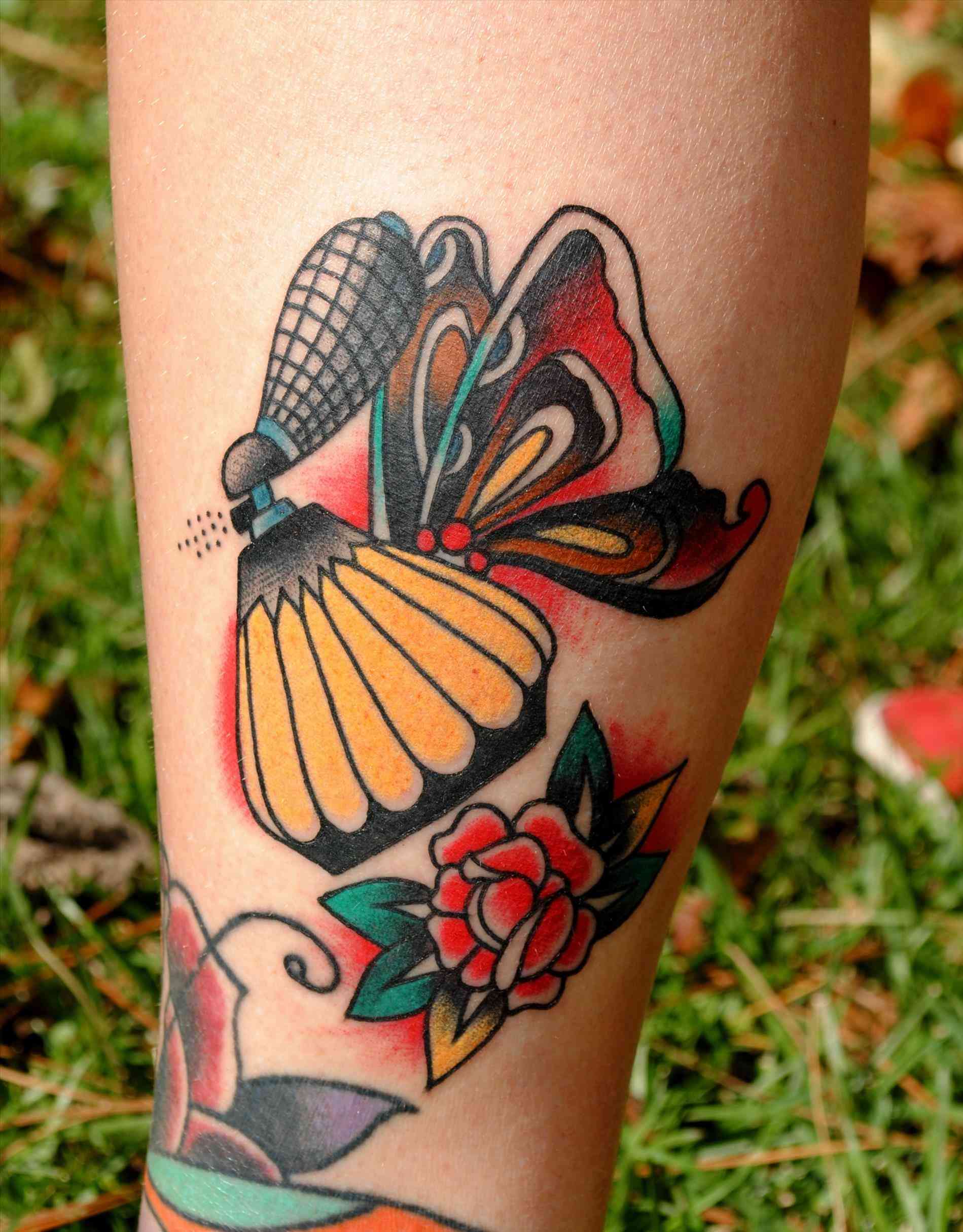 Традиционные татуировки будут очень красочными, обычно с большим контрастом. Татуировка одной бабочки в этом стиле будет хорошо смотреться, хотя вы можете попробовать набить несколько бабочек в полете или бабочку на фоне, например, цветов.