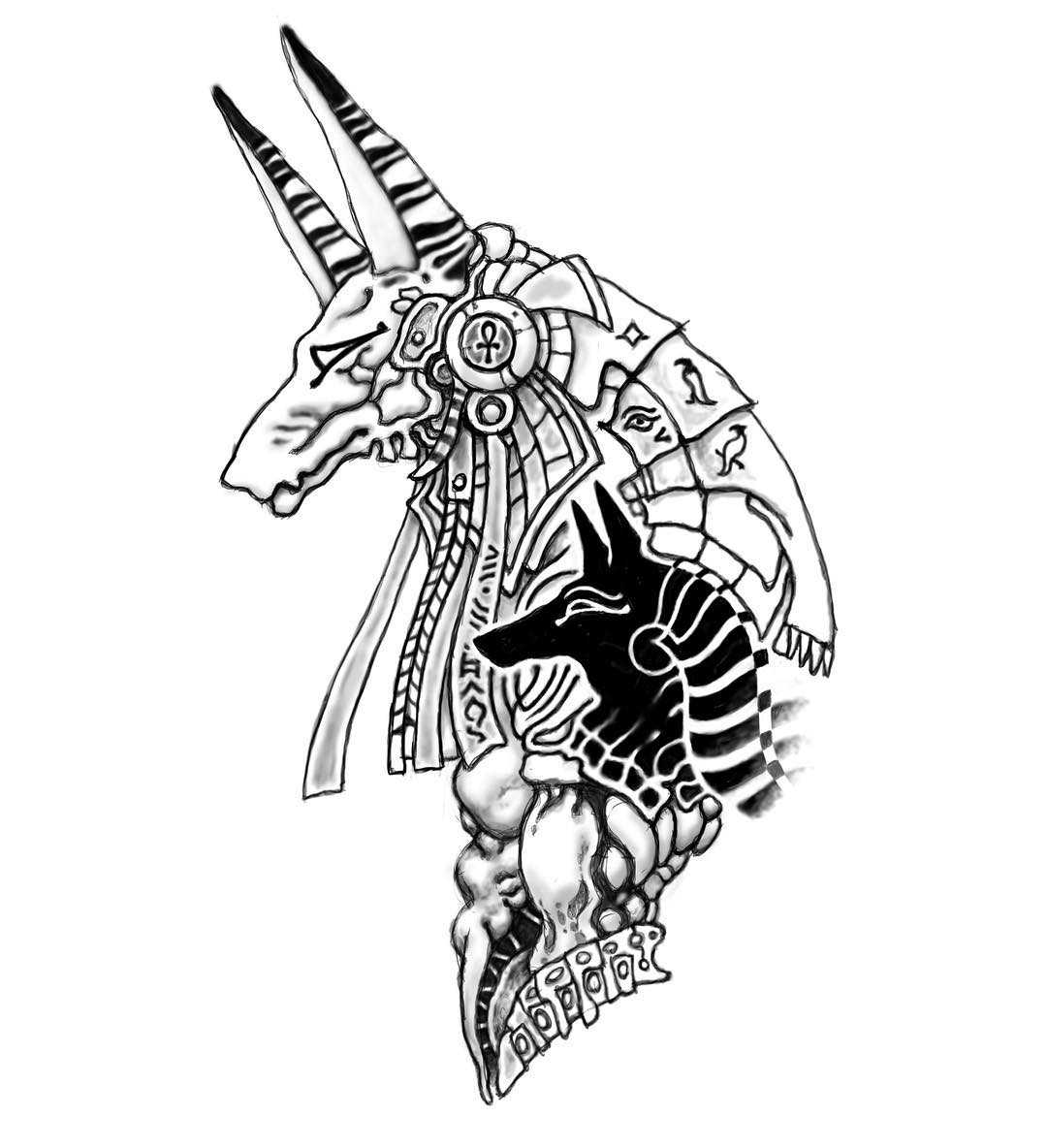 Анубис – бог, который выступает посредников для умерших, которым необходимо попасть в потусторонний мир. Также он является хранителем ядов и лекарств. Анубис тату и его значение в современном толковании выражается, как бог, открывающий путь. Варианты, в которых можно изобразить Анубиса безграничны. Можно нарисовать его классическое изображение, где он выступает в виде человека с головой шакала или собаки.