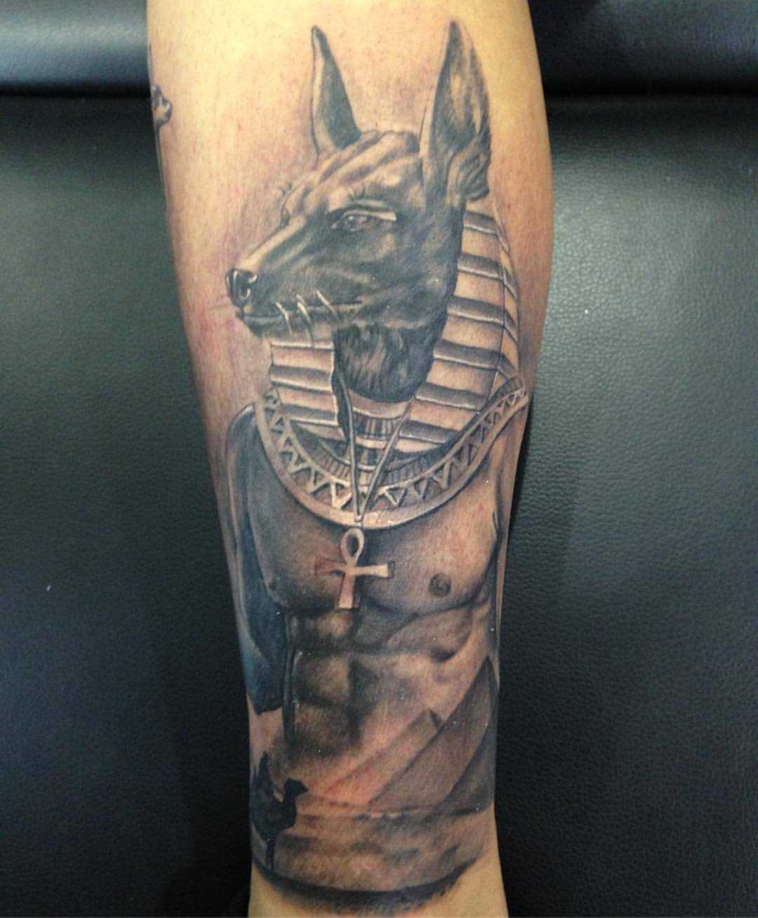 Изображения Анубиса лучше всего делать в довольно крупном размере. Самые подходящие места для татуировки – руки, спина, икры. В принципе, все зависит от вашей фантазии и профессионализма тату-мастера.