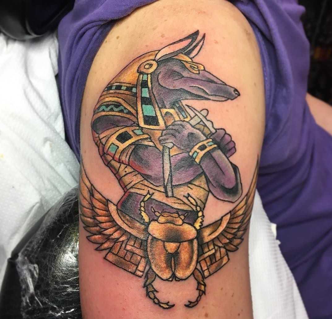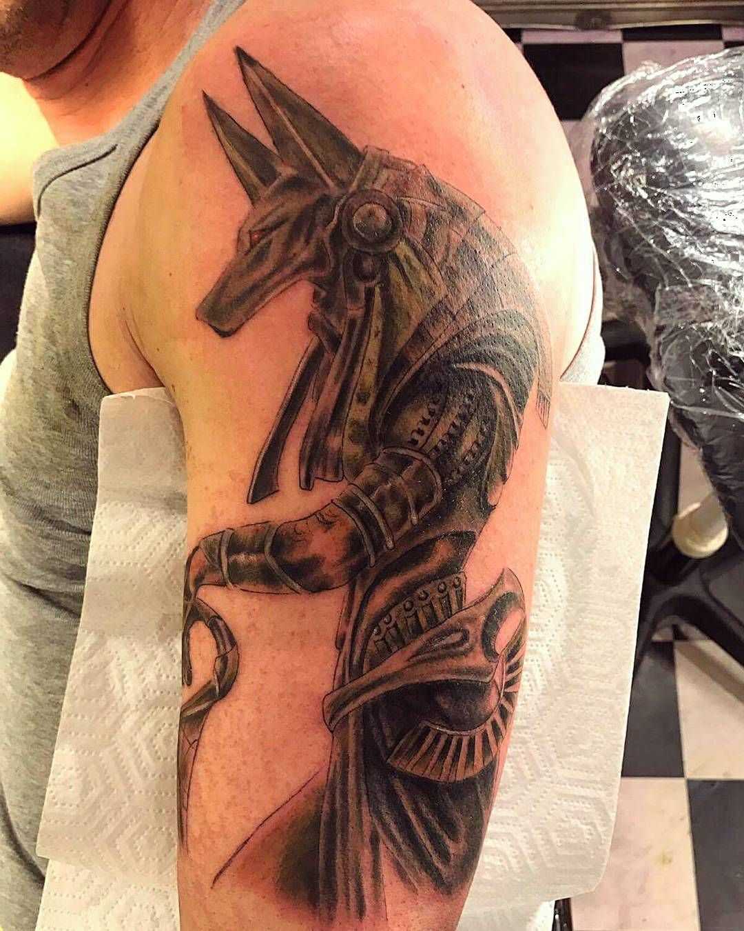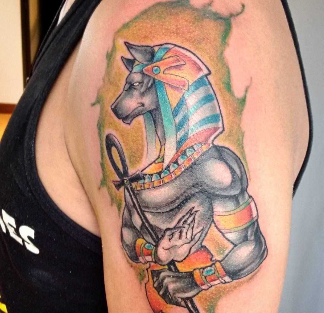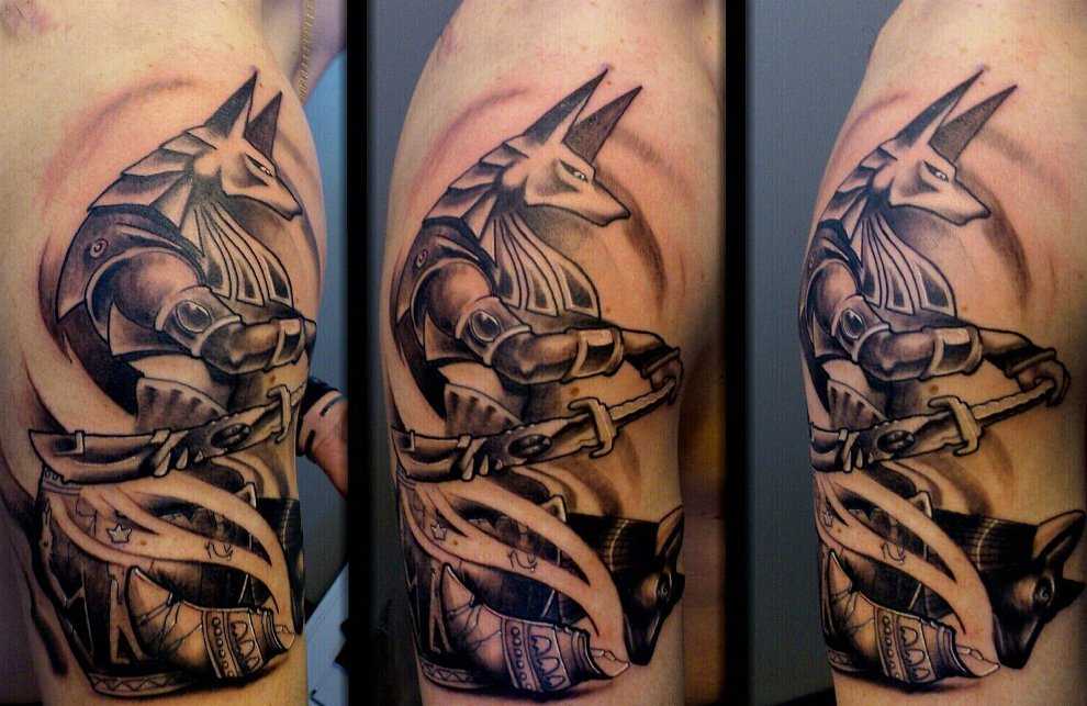 Тату анубис на плече. Как и татуировка анубиса на предплечье, мужские значения для наколки символизируют силу духу и тела. К тому же наколка на плече эффектно подчеркнет мускулы. Поэтому анубис тату эскизы на руке в области плеча среди девушек не так востребованы. А мужчины иногда покрывают весь рукав.