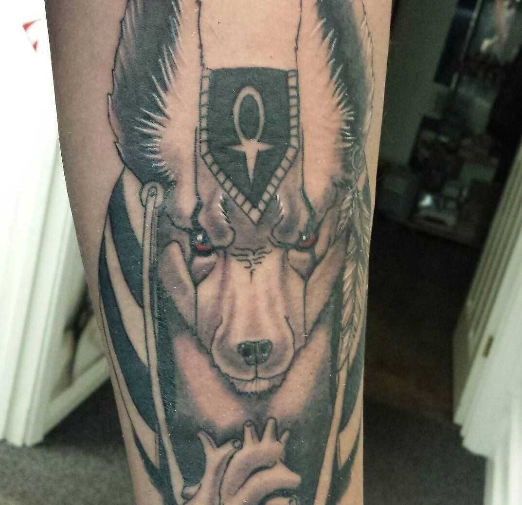 Изображение шакала на шее также допустимо, ведь там сильная энергетическая зона, усиливающая значение тату.