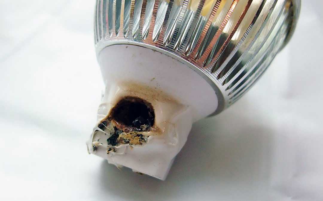 Чтобы уберечься от бракованных изделий, достаточно воздержаться от покупки дешевых светодиодных и других разновидностей ламп. Распространенный брак, который допускают на производстве бывает следующим: